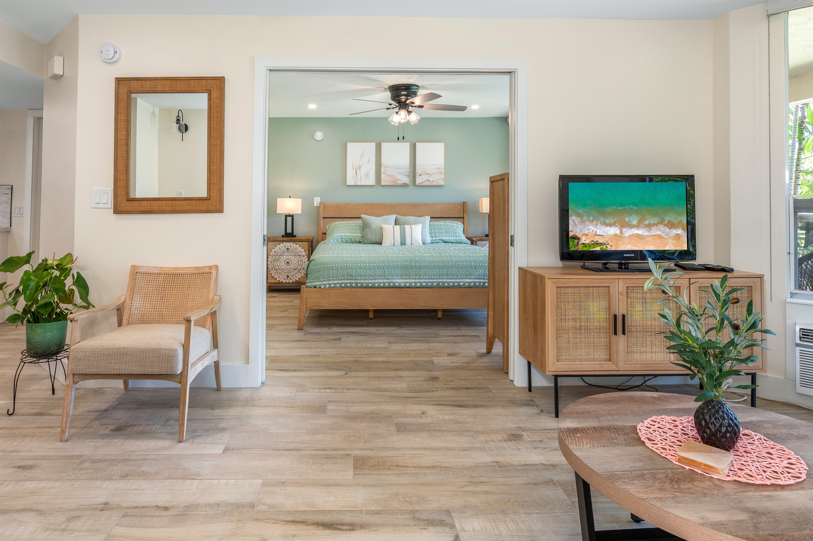 Wake up to serene garden views from the lanai and wind down with sunset strolls across the street at Kamaole Beach. Located in the Maui Banyan complex, our fully renovated Studio is designed to make your stay feel effortless and relaxing.